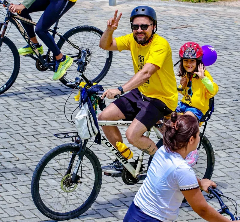 No meio de centenas de ciclistas, era fácil encontrar várias famílias que foram até o Pontal da Barra para participar do passeio e levantar a bandeira de um trânsito mais seguro.