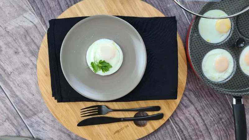 3 – Adicione 1 colher de sopa de água na frigideira, para criar vapor. Ele garante o cozimento uniforme da parte de cima e de baixo do ovo. Esse é um segredo que grandes chefs de cozinha já revelaram em livros e programas de TV.