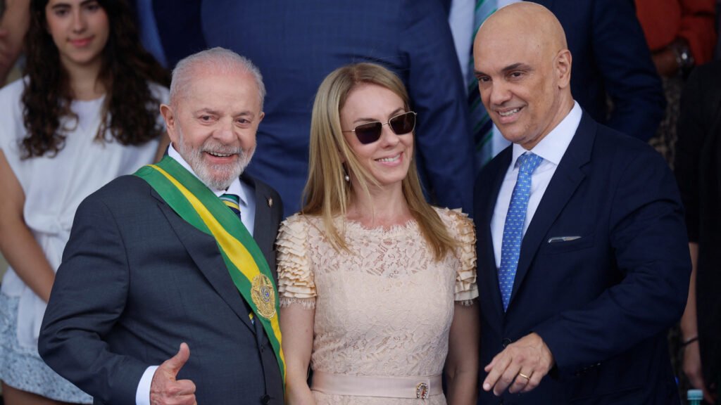 Presidente Luiz Inácio Lula da Silva com ministro do STF Alexandre de Moraes e a esposa do magistrado, Viviane Barci