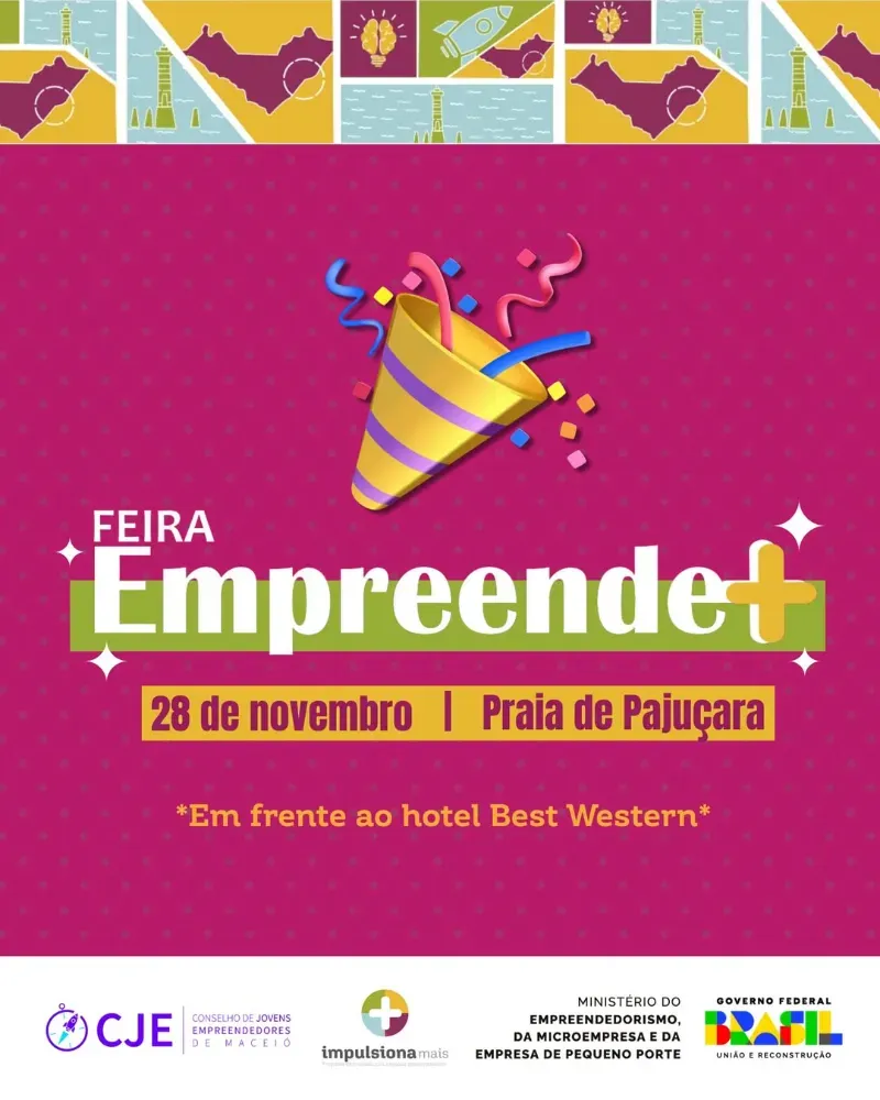 A Associação de Jovens Empreendedores (CJE) realiza, nesta sexta-feira (28), a Feira Empreende+, após capacitar 180 jovens de Maceió, Arapiraca e Rio Largo por meio do Projeto Impulsiona Mais. O evento apresentará 20 negócios que foram impactados pela qualificação. A programação ocorrerá das 9h às 17h, em frente ao Hotel Best Western, na Pajuçara, e também oferecerá serviços gratuitos.