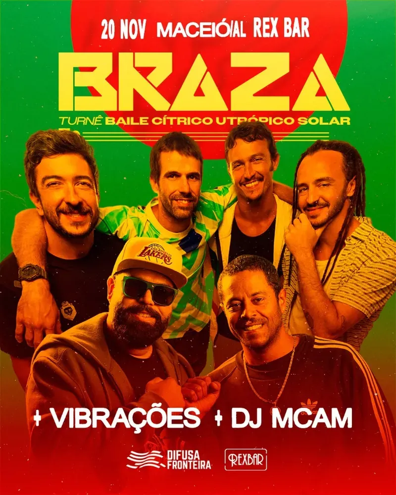 Na quinta (20), a partir das 22h, o Rex Bar recebe a turnê “Baile Cítrico Utrópico Solar” do Braza, trazendo seu mix único de reggae, rap, rock e brasilidade que contagia plateias por todo o país. A noite ainda conta com show da banda Vibrações e discotecagem do DJ Mcam, garantindo uma experiência ensolarada e quente, mesmo à noite.